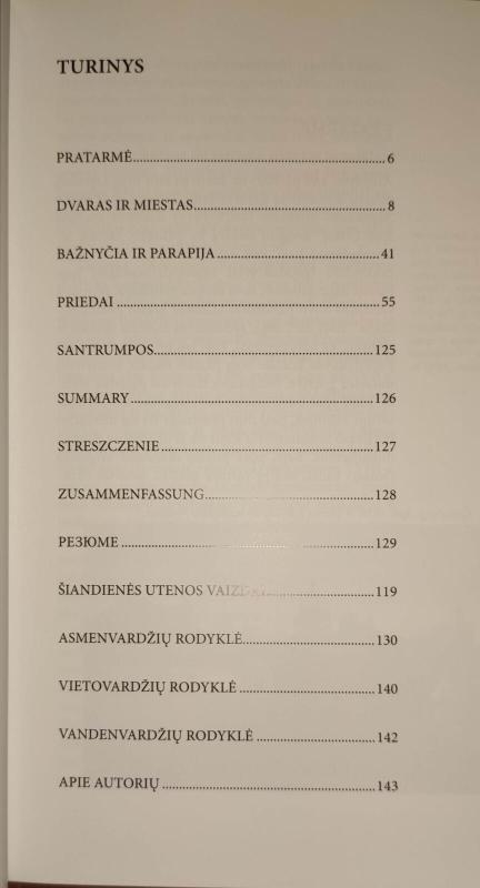Studijoje pateikti naujausi tyrimų duomenys apie Utenos miesto ir parapijos istorinę raidą ir analizuojami Utenos dvaro inventoriai.
