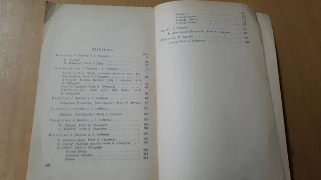 Homeras, Eschilas, Sofoklis, Vergilijus, Horacijus, Dantė, Petrarka, Graikų lyrika