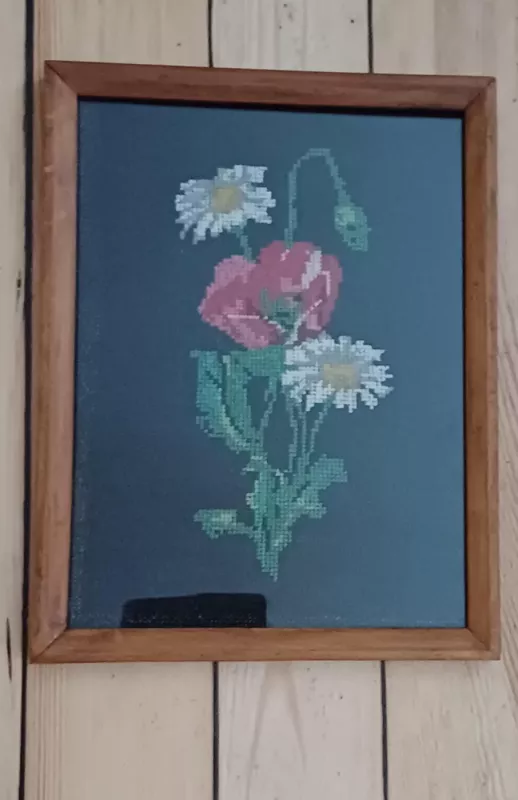 Siuvinėtas paveikslas įstiklintas su mediniu rėmeliu 33,5 cm/ 26 cm