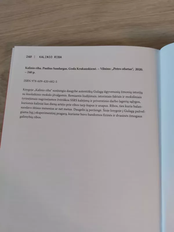 kuriomis kaliniai kas dieną artėjo prie ribos tarp šiapus ir anapus. Ribos, ties kuria balansuodavo ištisus mėnesius ar net metus. Daugelis ją peržengė. Šioje knygoje į Gulagą pažvelgiama